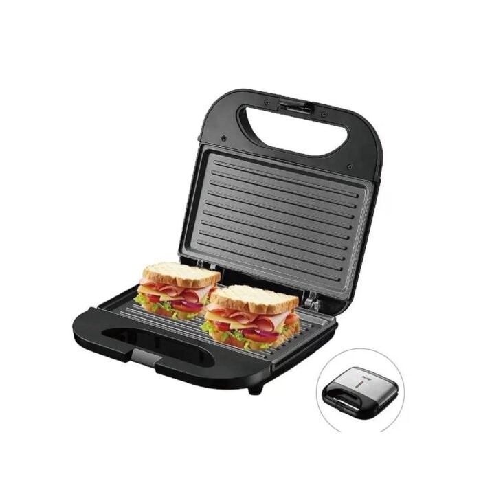 “بريستيج – ماكينة ساندويتش ووافل وشواية متعددة الوظائف – 700-800 واط ” بريستيج ماكينة صنع الساندويتشات والخبز المحمص والوافل والشواية وشريحة ضغط بانيني حديدية غير لاصقة متعددة الوظائف للشواء والتحميص، 700-800 واط، ستانلس ستيل اسود