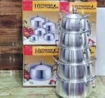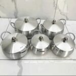 تشمل المجموعة 5 قدور بأحجام: 16 سم، 18 سم، 20 سم، 22 سم، 24 سم.