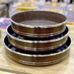 طقم صواني فرن جرانيت دائرية من HotChef –حبات 3 – لون بني