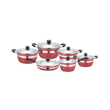 طقم أواني طهي فاخر من الستانلس ستيل 12 قطعة باللون الأحمر