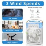مروحه مكيف هواء محمولة، مبرد هواء تبخيري صغير مع إضاءة LED بـ 7 ألوان، ومؤقت، و3 سرعات للرياح، و3 أوضاع للرش، و600 متر