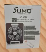 مروحة SUMO SM-2122 القابلة لإعادة الشحن – 12 بوصة مع ريموت ومصباح LED