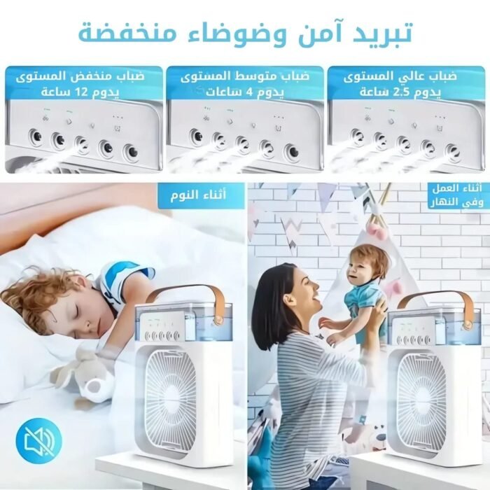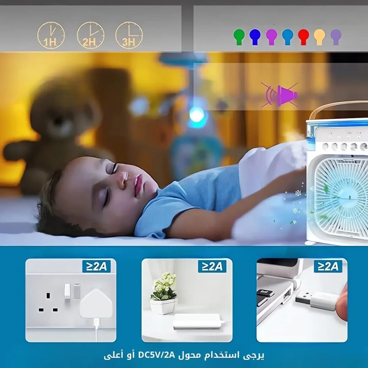 “مروحة رذاذ الماء 4 في 1 تبريد وترطيب مع إضاءة هادئة