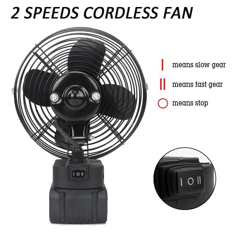 هذه المروحة المدمجة والقوية هي رفيقك المثالي للتغلب على الحرارة في الهواء الطلق. يوفر المحرك النحاسي بدون فرش تدفق هواء هادئ وفعال مع متانة طويلة الأمد. يتميز بسرعتين للهواء وإمالة يدوية بزاوية 360 درجة، ويمكنك تخصيصها حسب راحتك. هذه المروحة لاسلكية ومتوافقة مع بطاريات Makita بقوة 48 فولت، وهي مثالية للمخيم أو أي نشاط خارجي حيث تحتاج إلى نسيم بارد
